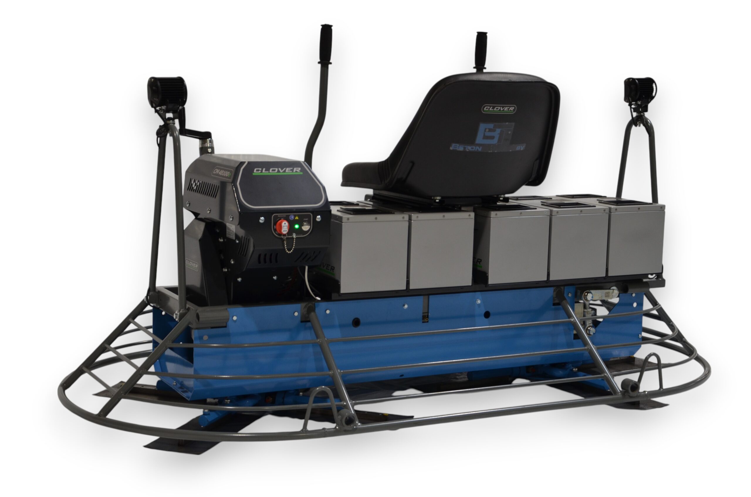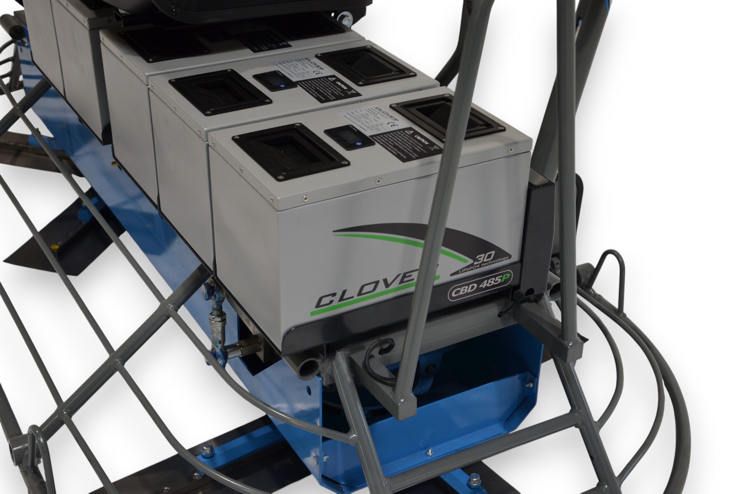 De BT / Clover 2x90cm accu vlindermachine is uitgerust met een zeer krachtige 10kW elektromotor en maakt gebruik van vijf 48V / 30Ah LiFePo4-accu’s. Dankzij de uniforme accutechniek zijn deze accu’s volledig uitwisselbaar met andere Clover-systemen inclusief onze kantenmachines.