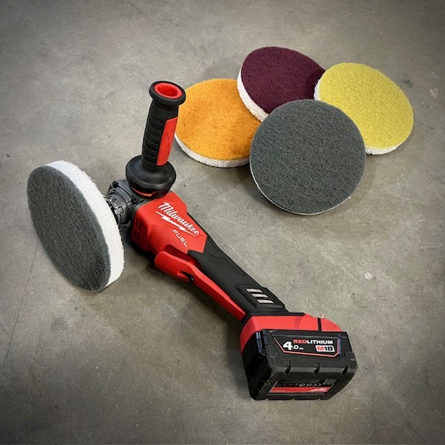 Uitermate geschikt om beton te reinigen en te polijsten waar je met een grotere diameter niet bij kunt komen.