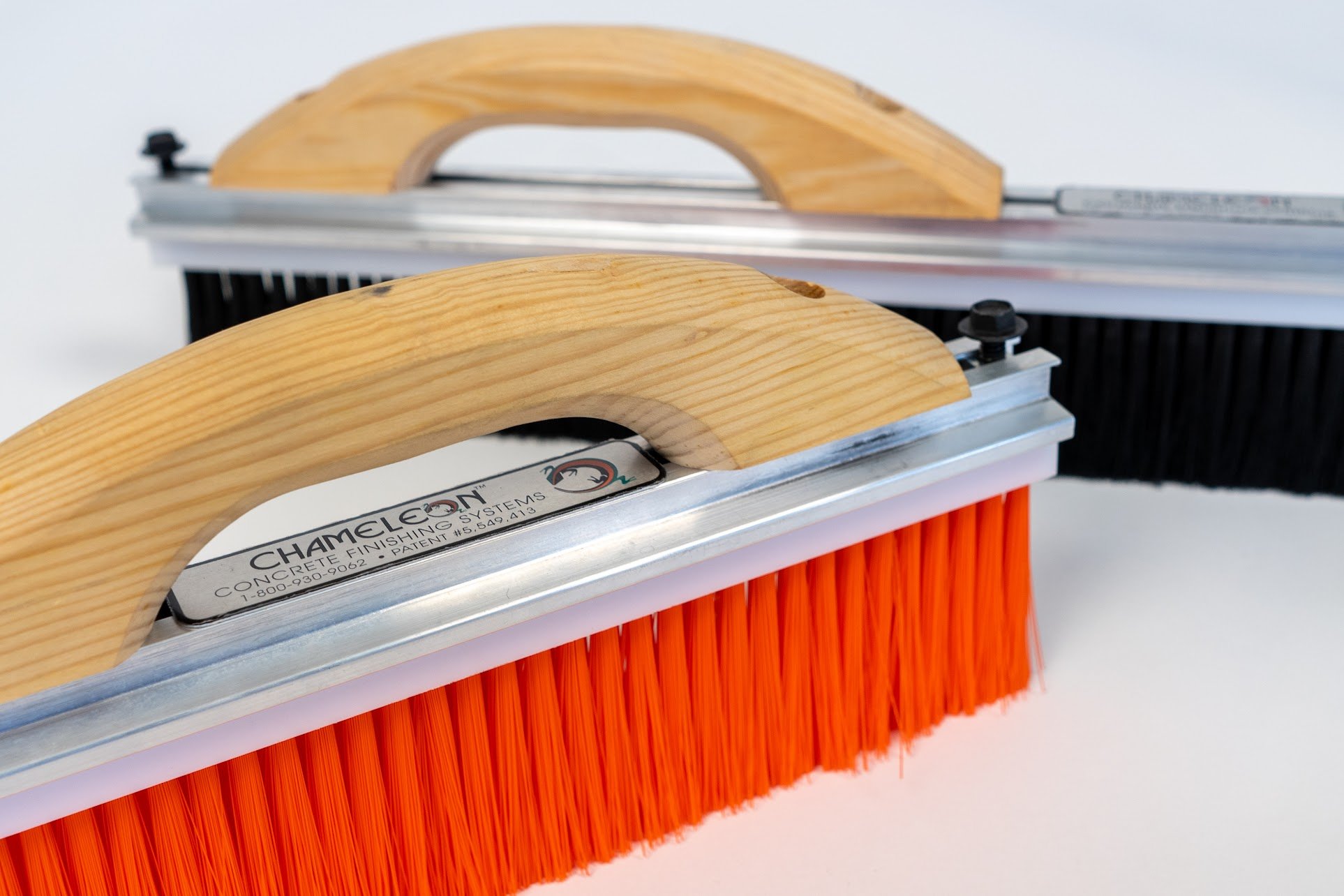 De Chameleon handbezem van Marion Brush is geschikt om textuur te vegen op verse beton.