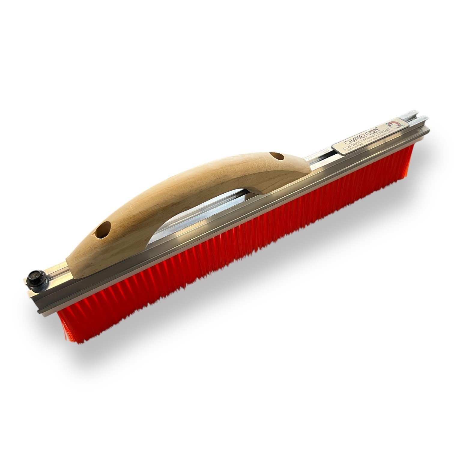 De Chameleon betonbezem is standaard voorzien van een ergonomisch houten handvat.