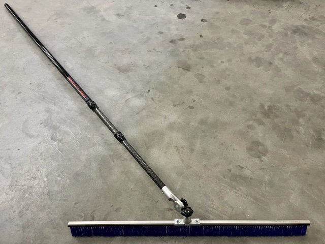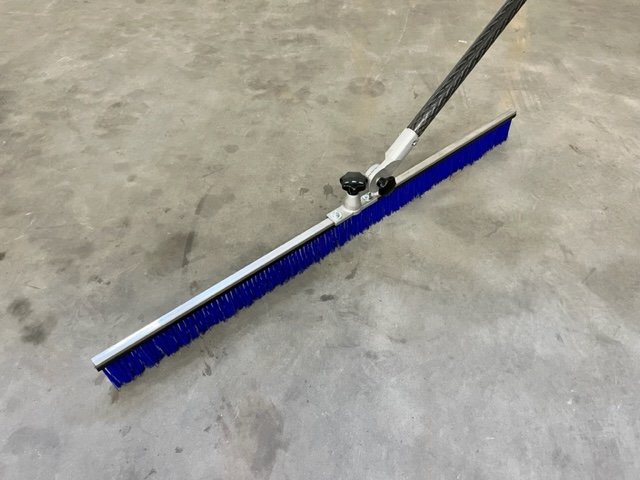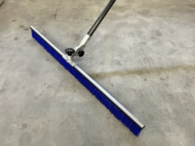 De stijve 1200mm nylon beton bezem laat een slijtvaste anti slip finish achter en is voorzien van een speciale “all angle” adapter.
