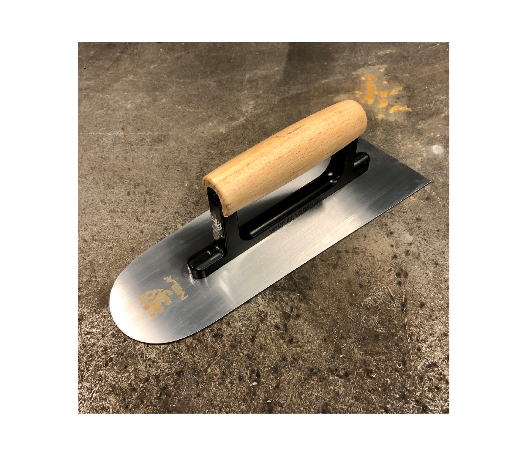 De spanen zijn uitgevoerd met een rond houten handvat en het voetstuk is uit één deel gegoten waardoor hij zeer stijf is.
