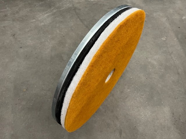 De schijf is over de hele diameter voorzien van speciaal foam en een klittenband laag. Hierdoor volgt de diamantschijf alle delen op de vloer volledig, en is de diamantschijf in een paar tellen te wisselen.