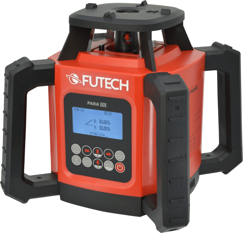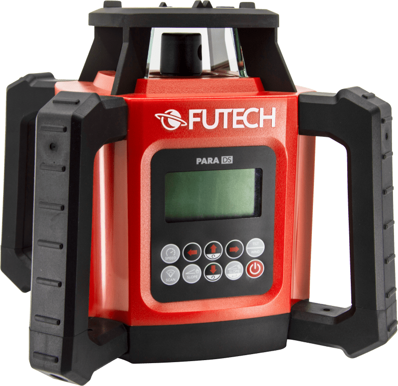 De FUTECH Para DS is een zeer nauwkeurige rode afschot / rotatielaser met digitaal afschot die zowel binnen als buiten kan worden gebruikt.