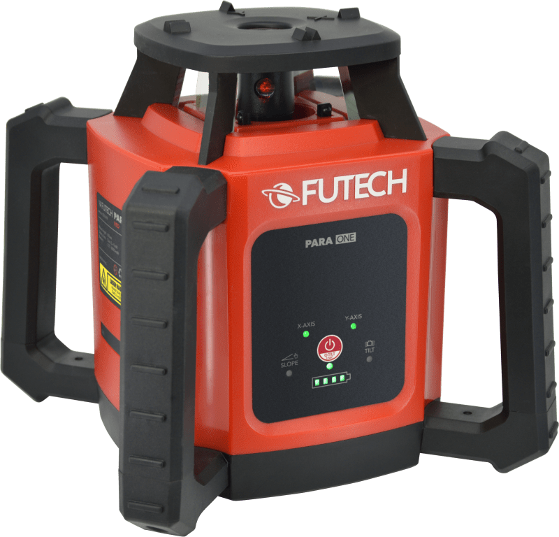 De FUTECH Para ONE is een zeer nauwkeurige rode rotatielaser die zowel binnen als buiten kan worden gebruikt.