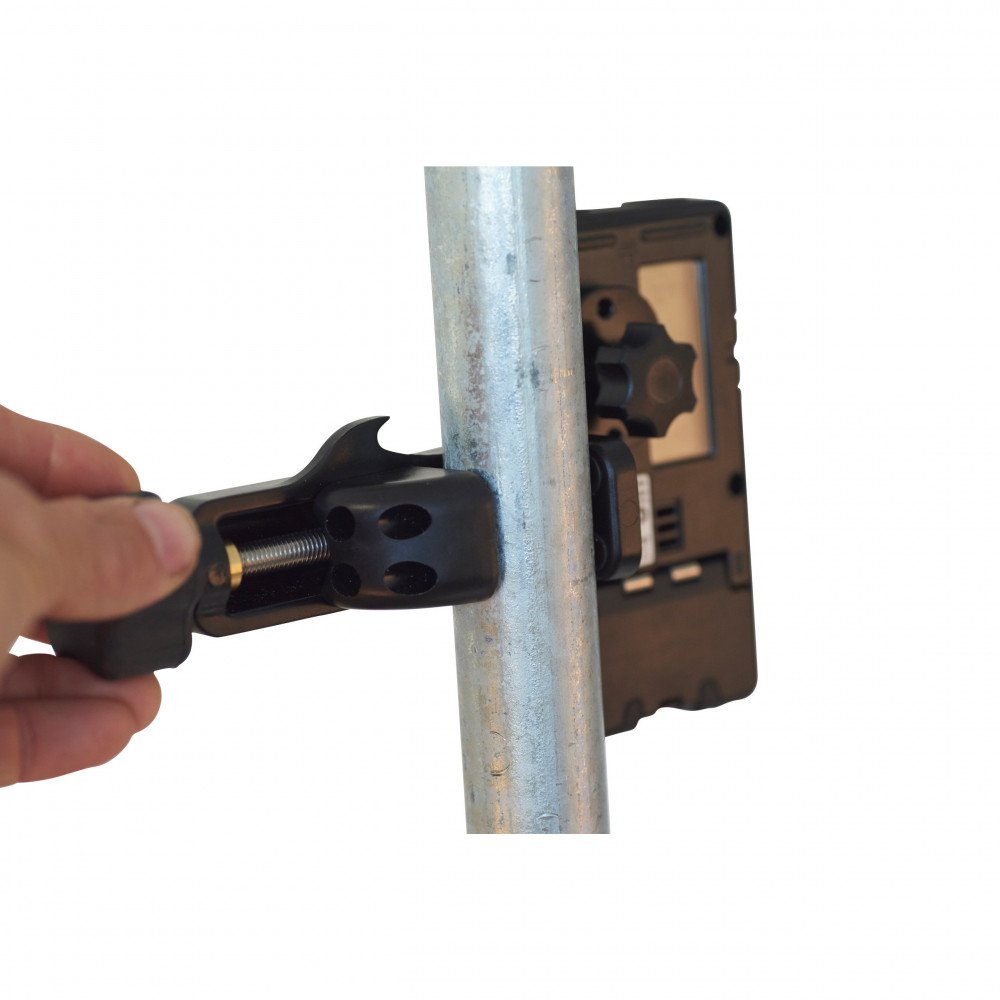 De Futech Quattro mm laser ontvanger wordt geleverd met baakklem om hem eenvoudig te bevestigen aan een baak, hoogtelat, draadeind, pijp of waterpas om de hoogte in te stellen.