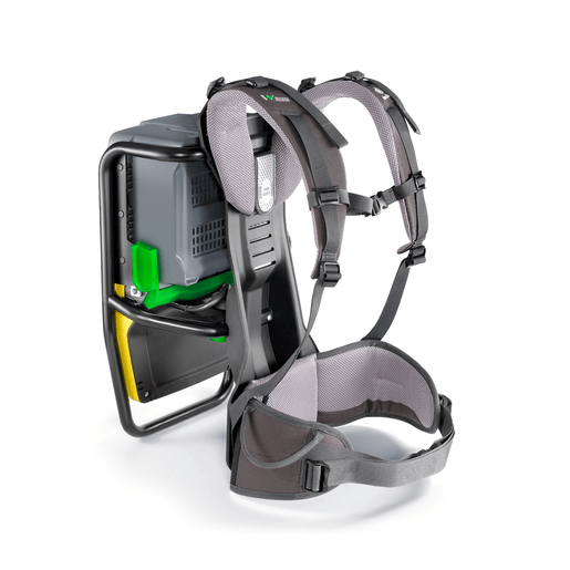 De hoogfrequent omvormer met wisselbare accu wordt gedragen als een backpack rugtas. Hierdoor heb je geen last van verlengkabels en is de trilnaald zelfs met een hand te bedienen.
